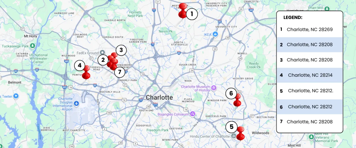 Our rental properties, just 5 minutes from Charlotte Douglas Airport and downtown, offer over 30 rooms across 7 great locations. Whether you're here for a short stay or longer, enjoy easy access to transportation, dining, shopping, and entertainment.